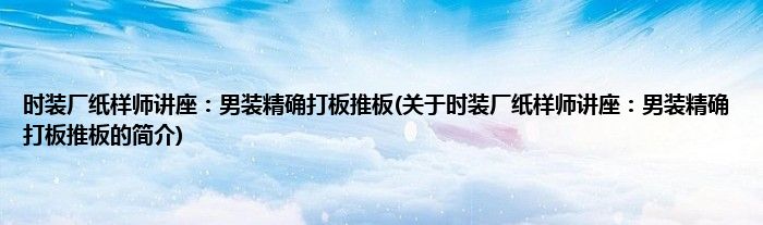 大家好,时装厂纸样师讲座:男装精确打板推板,关于时装厂纸样师讲座:男装精确打板推板的简介很多人还不知道,现在让我们一起来看看吧!