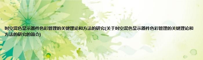 本文关于时空混色显示器件色彩管理的关键理论和方法的研究的简介就讲解完毕,希望对大家有所帮助。
