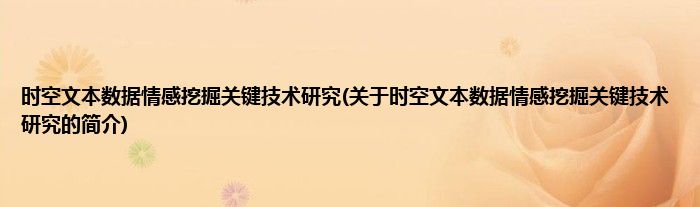 大家好,时空文本数据情感挖掘关键技术研究,关于时空文本数据情感挖掘关键技术研究的简介很多人还不知道,现在让我们一起来看看吧!