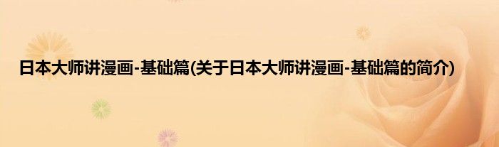 日本大师讲漫画-基础篇(关于日本大师讲漫画-基础篇的简介)