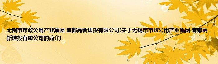 本文关于无锡市市政公用产业集团 宜都高新建投有限公司的简介就讲解完毕,希望对大家有所帮助。