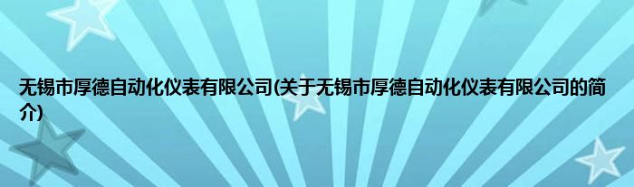 本文关于无锡市厚德自动化仪表有限公司的简介就讲解完毕,希望对大家有所帮助。