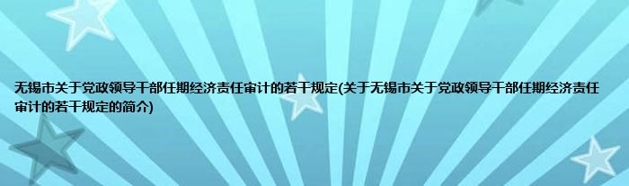 大家好,无锡市关于党政领导干部任期经济责任审计的若干规定,关于无锡市关于党政领导干部任期经济责任审计的若干规定的简介很多人还不知道,现在让我们一起来看看吧!