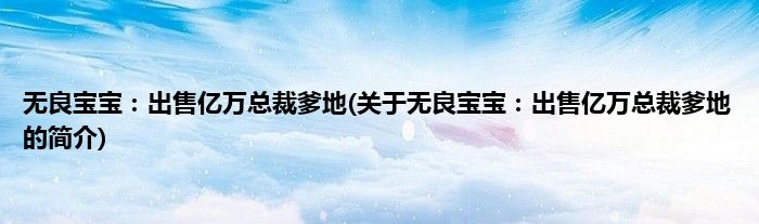 大家好,无良宝宝:出售亿万总裁爹地,关于无良宝宝:出售亿万总裁爹地的简介很多人还不知道,现在让我们一起来看看吧!