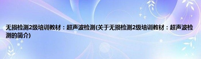 本文关于无损检测2级培训教材:超声波检测的简介就讲解完毕,希望对大家有所帮助。