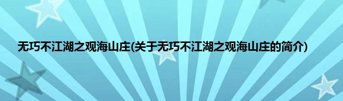 本文关于无巧不江湖之观海山庄的简介就讲解完毕,希望对大家有所帮助。