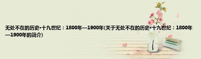 本文关于无处不在的历史·十九世纪:1800年—1900年的简介就讲解完毕,希望对大家有所帮助。