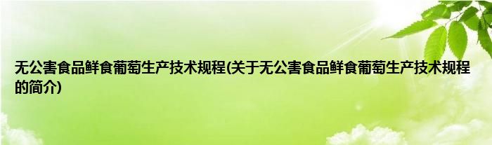 大家好,无公害食品鲜食葡萄生产技术规程,关于无公害食品鲜食葡萄生产技术规程的简介很多人还不知道,现在让我们一起来看看吧!