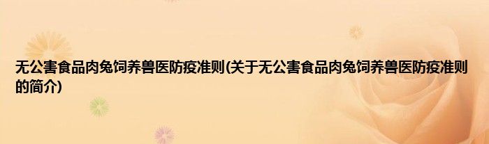 最佳答案大家好,无公害食品肉兔饲养兽医防疫准则,关于无公害食品肉兔饲养兽医防疫准则的简介很多人还不知道,现在让我们一起来看看吧! 1、 《无公害食品肉兔饲养兽医防疫准则》是2002年9月1日实施的一项行业标准。本文关于无公害食品肉兔饲养兽医防疫准则的简介就讲解完毕,希望对大家有所帮助。