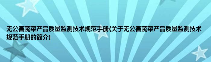 无公害蔬菜产品质量监测技术规范手册(关于无公害蔬菜产品质量监测技术规范手册的简介)