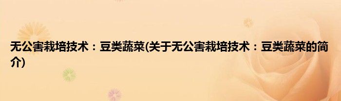 大家好,无公害栽培技术:豆类蔬菜,关于无公害栽培技术:豆类蔬菜的简介很多人还不知道,现在让我们一起来看看吧!