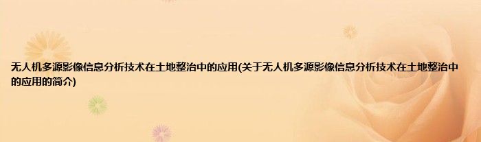 本文关于无人机多源影像信息分析技术在土地整治中的应用的简介就讲解完毕,希望对大家有所帮助。