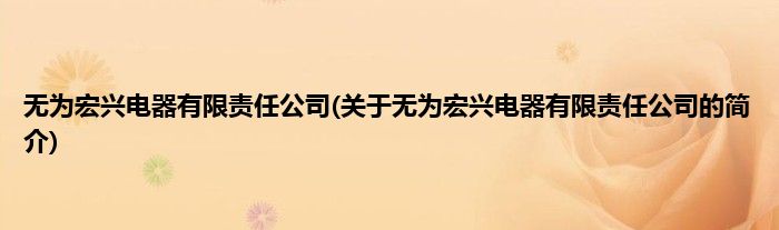 无为宏兴电器有限责任公司(关于无为宏兴电器有限责任公司的简介)