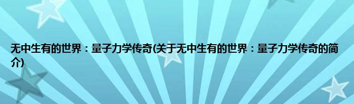 本文关于无中生有的世界:量子力学传奇的简介就讲解完毕,希望对大家有所帮助。