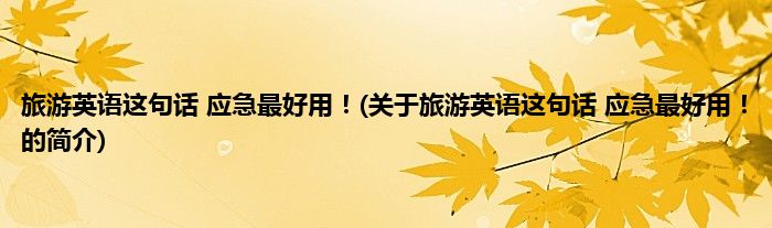 本文关于旅游英语这句话,应急最好用!的简介就讲解完毕,希望对大家有所帮助。