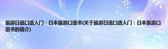 本文关于旅游日语口语入门:日本旅游口语书的简介就讲解完毕,希望对大家有所帮助。