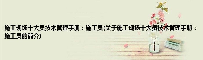 大家好,施工现场十大员技术管理手册:施工员,关于施工现场十大员技术管理手册:施工员的简介很多人还不知道,现在让我们一起来看看吧!