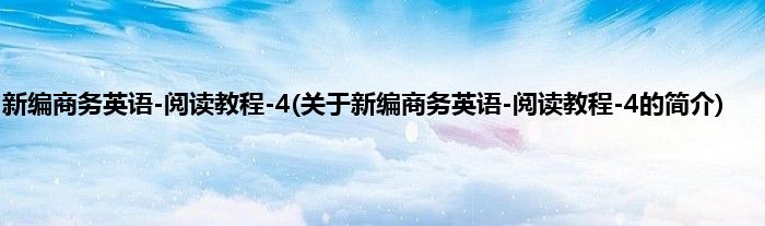 大家好,新编商务英语-阅读教程-4,关于新编商务英语-阅读教程-4的简介很多人还不知道,现在让我们一起来看看吧!