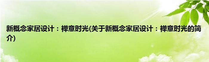 新概念家居设计:禅意时光(关于新概念家居设计:禅意时光的简介)