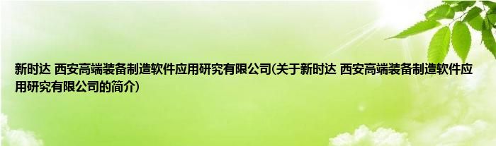 新时达 西安高端装备制造软件应用研究有限公司(关于新时达 西安高端装备制造软件应用研究有限公司的简介)