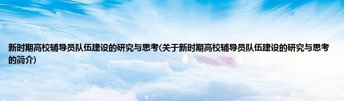 新时期高校辅导员队伍建设的研究与思考(关于新时期高校辅导员队伍建设的研究与思考的简介)