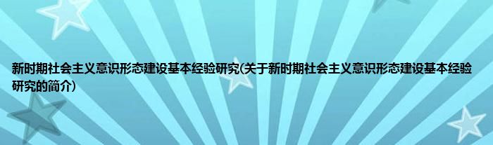 大家好,新时期社会主义意识形态建设基本经验研究,关于新时期社会主义意识形态建设基本经验研究的简介很多人还不知道,现在让我们一起来看看吧!