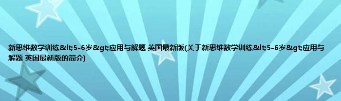 1、 《新思维数学训练<5-6岁>应用与解题(英国最新版)》是2004年少年儿童出版社出版的书籍。