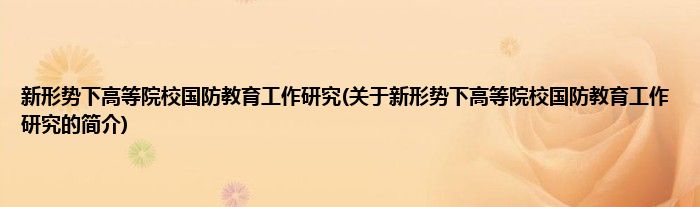 本文关于新形势下高等院校国防教育工作研究的简介就讲解完毕,希望对大家有所帮助。