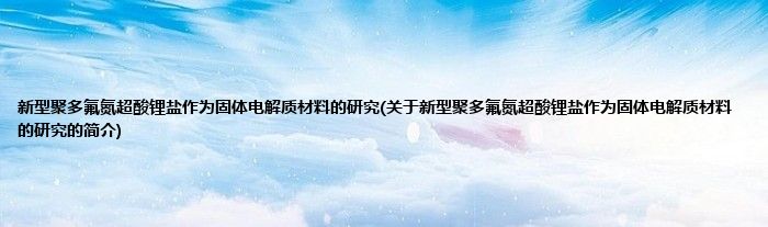 大家好,新型聚多氟氮超酸锂盐作为固体电解质材料的研究,关于新型聚多氟氮超酸锂盐作为固体电解质材料的研究的简介很多人还不知道,现在让我们一起来看看吧!