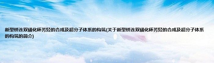 本文关于新型桥连双磺化杯芳烃的合成及超分子体系的构筑的简介就讲解完毕,希望对大家有所帮助。