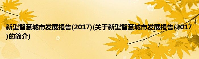 本文关于新型智慧城市发展报告(2017)的简介就讲解完毕,希望对大家有所帮助。