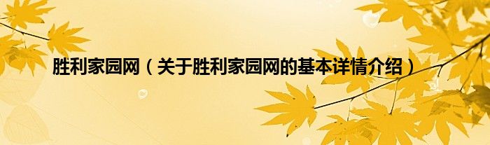 本文关于胜利家园网的基本详情介绍就讲解完毕,希望对大家有所帮助。