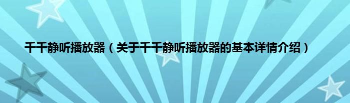 本文关于千千静听播放器的基本详情介绍就讲解完毕,希望对大家有所帮助。