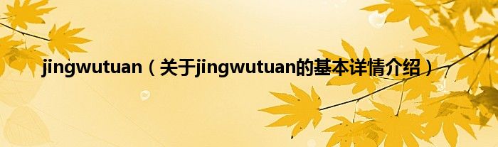 本文关于jingwutuan的基本详情介绍就讲解完毕,希望对大家有所帮助。