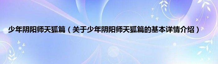 少年阴阳师天狐篇(关于少年阴阳师天狐篇的基本详情介绍)