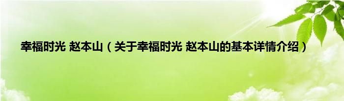 本文关于幸福时光 赵本山的基本详情介绍就讲解完毕,希望对大家有所帮助。