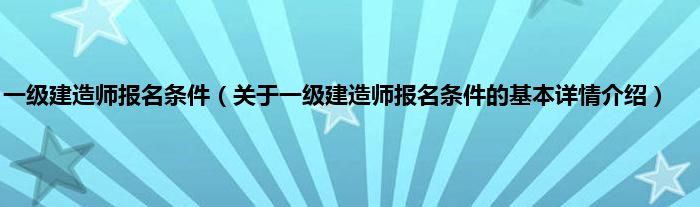 本文关于一级建造师报名条件的基本详情介绍就讲解完毕,希望对大家有所帮助。