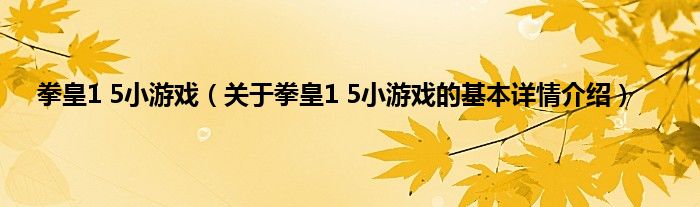 本文关于拳皇1 5小游戏的基本详情介绍就讲解完毕,希望对大家有所帮助。