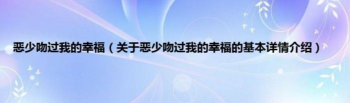 恶少吻过我的幸福(关于恶少吻过我的幸福的基本详情介绍)
