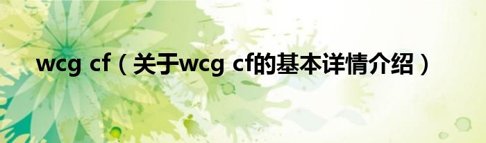大家好我是小蝌蚪,wcg cf,关于wcg cf的基本详情介绍很多人还不知道,那么现在让我们一起来看看吧!
