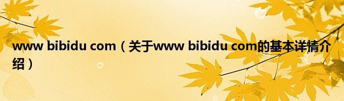 本文关于www bibidu com的基本详情介绍就讲解完毕,希望对大家有所帮助。