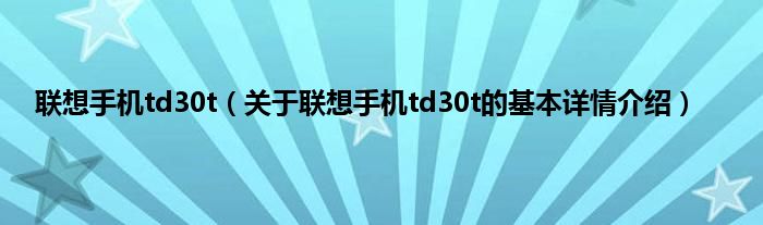 本文关于联想手机td30t的基本详情介绍就讲解完毕,希望对大家有所帮助。
