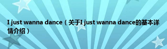 本文关于I just wanna dance的基本详情介绍就讲解完毕,希望对大家有所帮助。