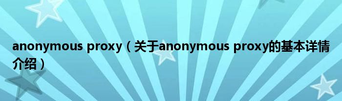 anonymous proxy(关于anonymous proxy的基本详情介绍)