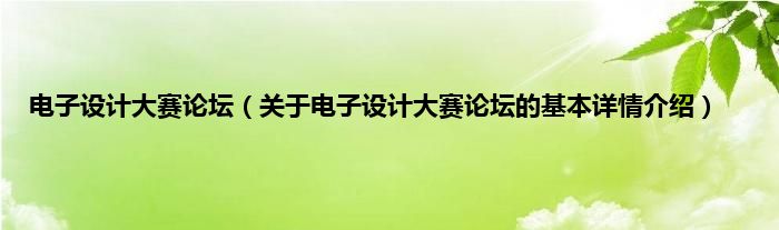 本文关于电子设计大赛论坛的基本详情介绍就讲解完毕,希望对大家有所帮助。