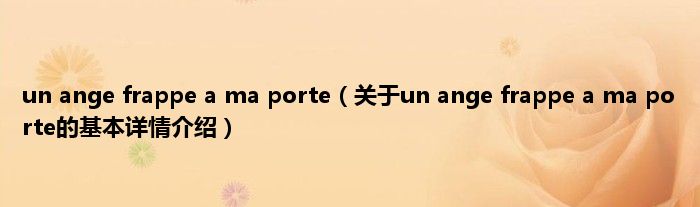 本文关于un ange frappe a ma porte的基本详情介绍就讲解完毕,希望对大家有所帮助。