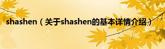本文关于shashen的基本详情介绍就讲解完毕,希望对大家有所帮助。
