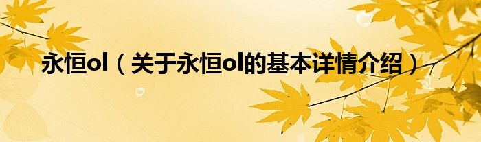 本文关于永恒ol的基本详情介绍就讲解完毕,希望对大家有所帮助。