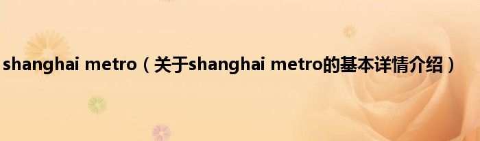 本文关于shanghai metro的基本详情介绍就讲解完毕,希望对大家有所帮助。
