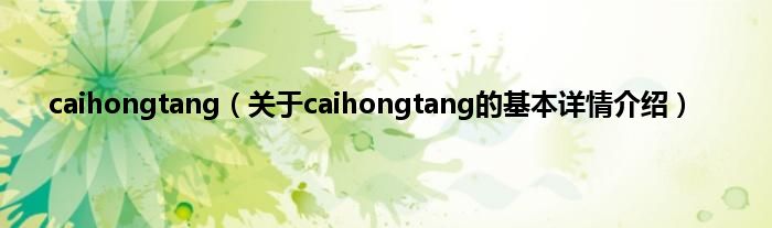 本文关于caihongtang的基本详情介绍就讲解完毕,希望对大家有所帮助。